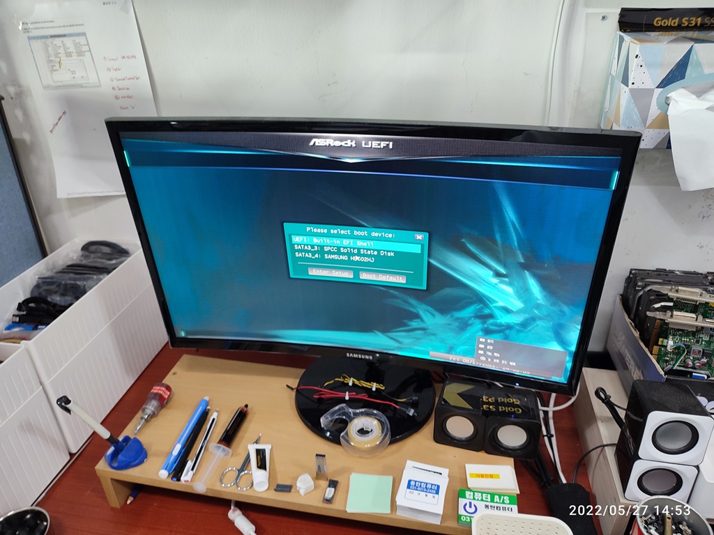 ASROCK 화면에서 동그라미 돌아가다가 윈도우로 넘어가지 않고 자동복구 화면으로 넘어갑니다.