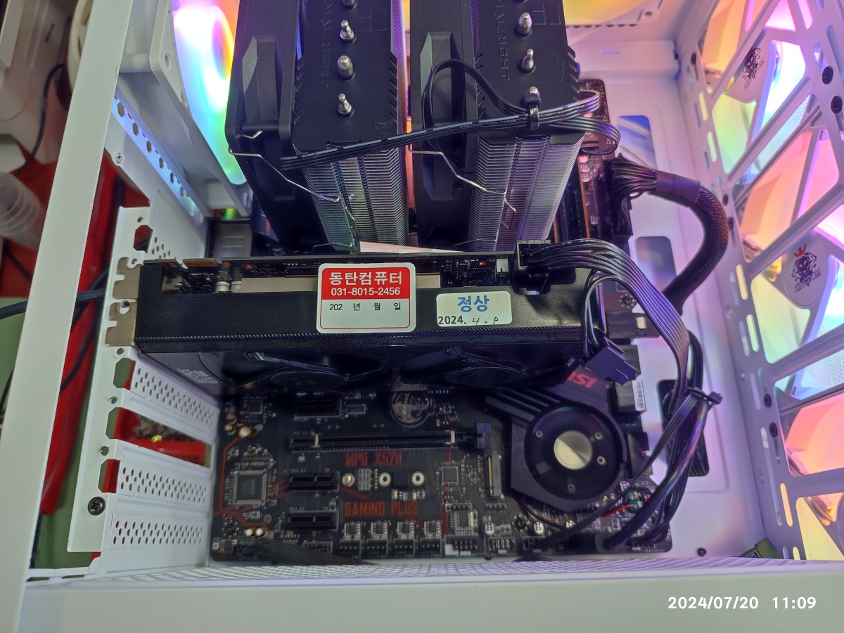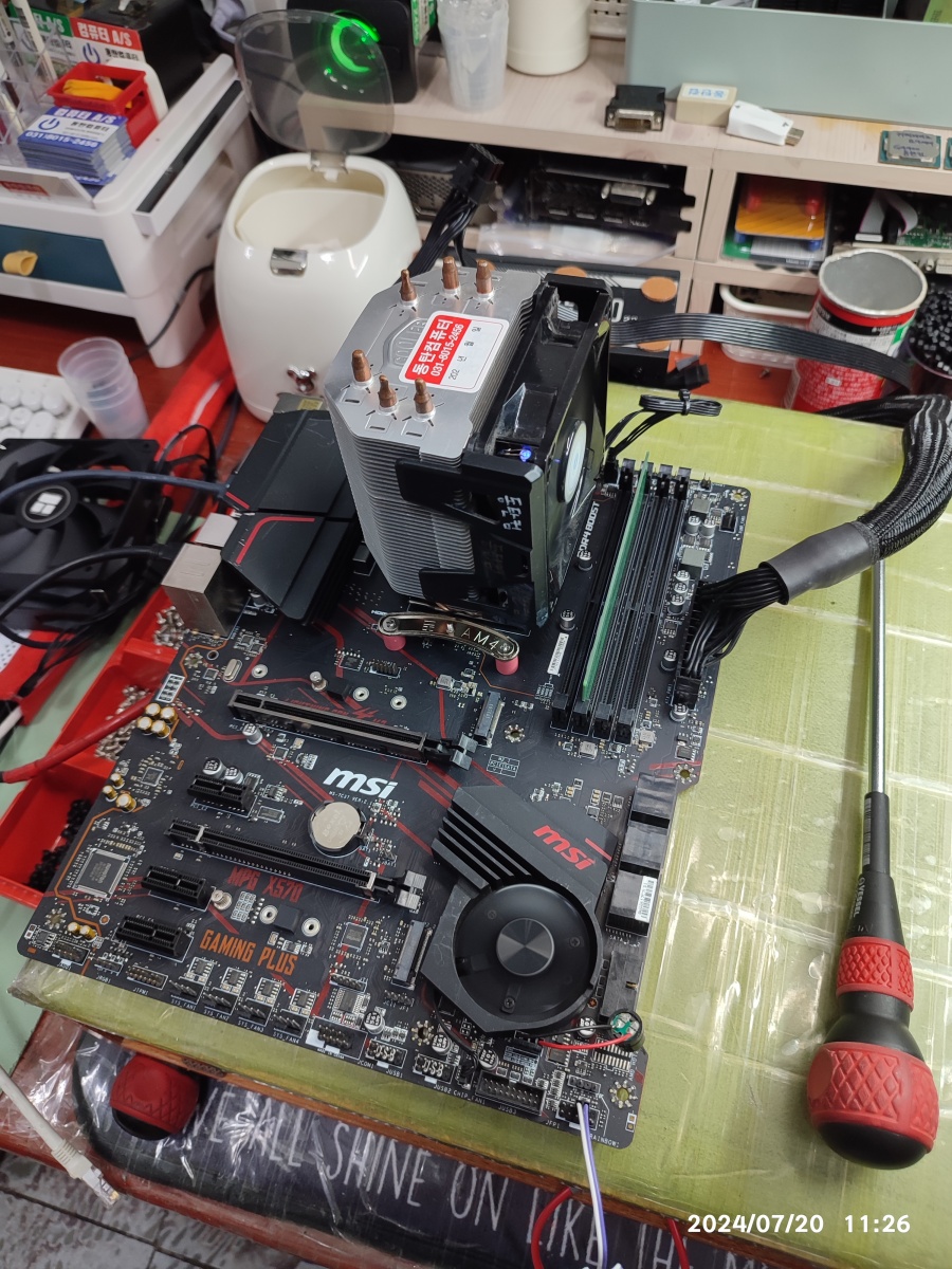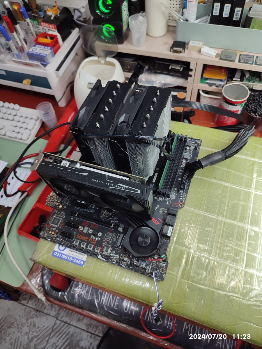 2) 제 테스트용 그래픽카드를 손님의 컴퓨터에 꽂아도 동일한 증상이 발생되면, 손님의 CPU와 메인보드를 케이스에서 분리해서 테스트를 진행해도 동일한 증상을 보입니다.