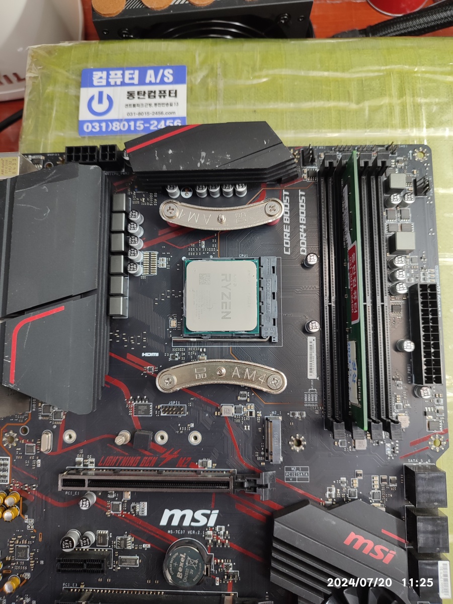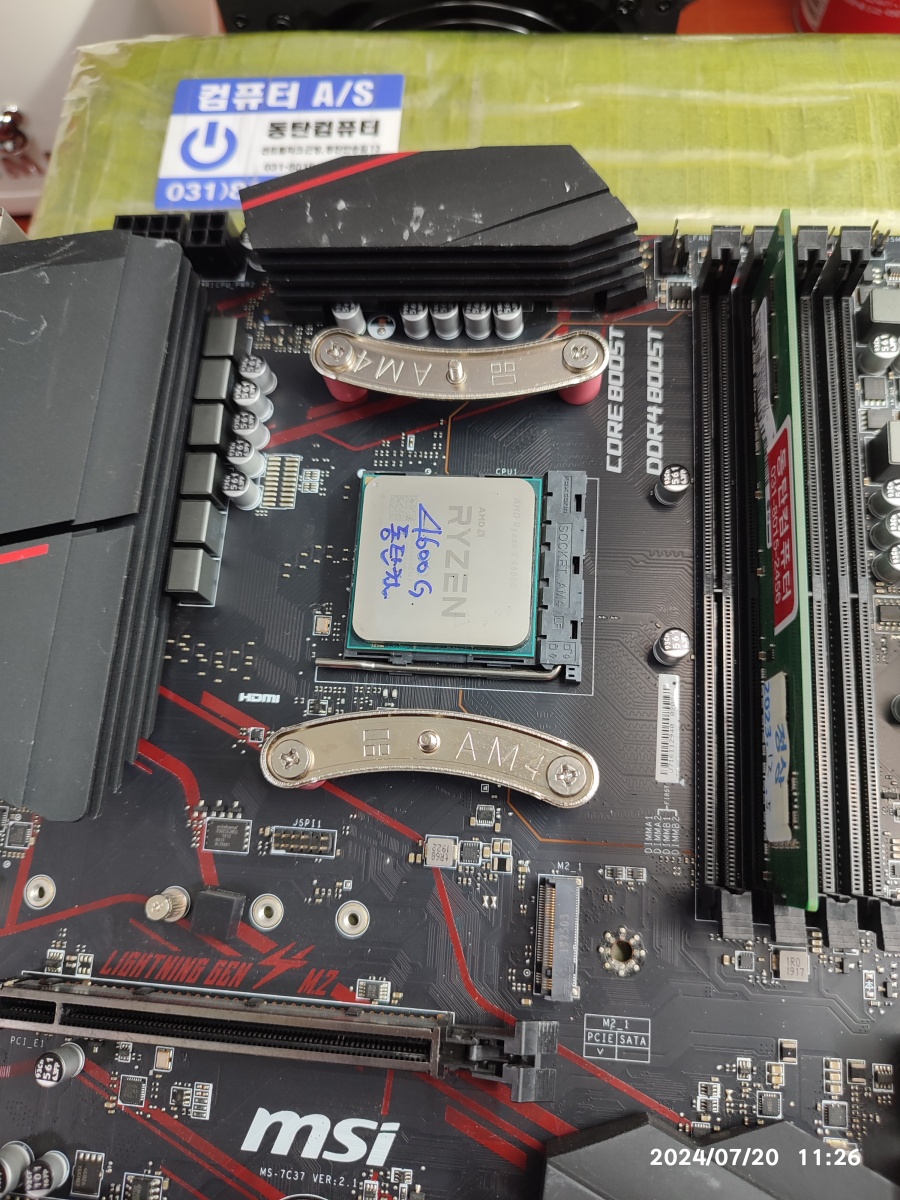 10) 손님의 메인보드 점검하는 과정에서 다른 CPU(3500X)를 장착했을 때, 동일한 불량 증상이 발생되는 걸 확인했습니다. 다른 CPU 3200G, 4600G는 정상 동작됩니다. 3700X도 동일한 불량 증상이 발생됩니다. CPU 종류에 따라서 증상이 나타났다 없어졌다 하는 신기한 불량 증상이네요. 3500X, 3700X = 증상 발생됨, 3200G, 4600G 내장 그래픽카드가 있는 CPU는 증상이 발생되지 않는 문제가 있어 보입니다. 더 상세한 원인을 찾기 위해서는 더 많은 테스트를 진행해서 점검할 필요가 있는데요.